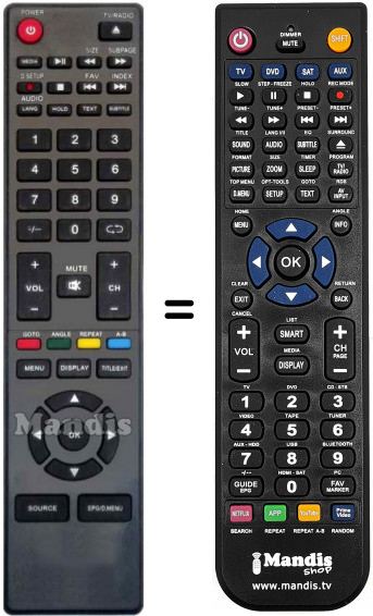 Télécommande qui remplace celle d'origine car elle possède les mêmes fonctions.