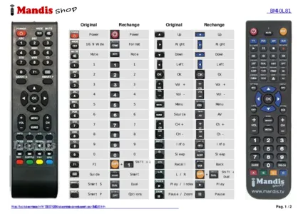 Un document est inclus pour vous aider à utiliser facilement la nouvelle télécommande, en indiquant la correspondance des boutons.