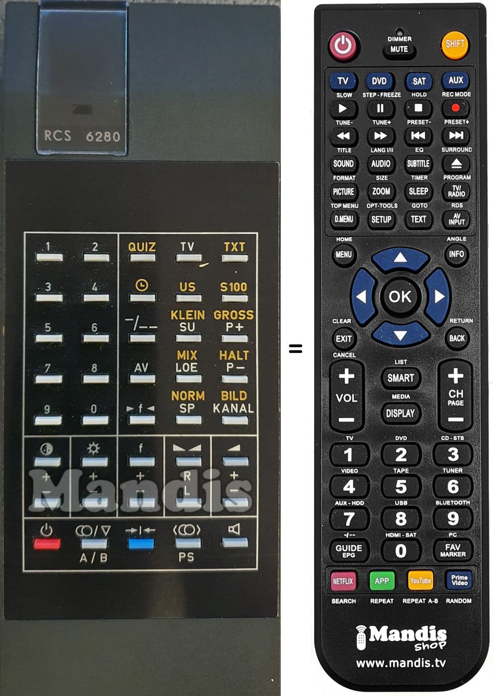 Télécommande qui remplace celle d'origine car elle possède les mêmes fonctions.