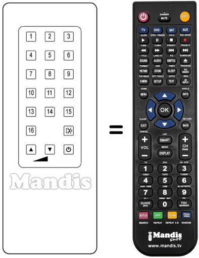 Télécommande qui remplace celle d'origine car elle possède les mêmes fonctions.