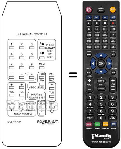 Télécommande qui remplace celle d'origine car elle possède les mêmes fonctions.