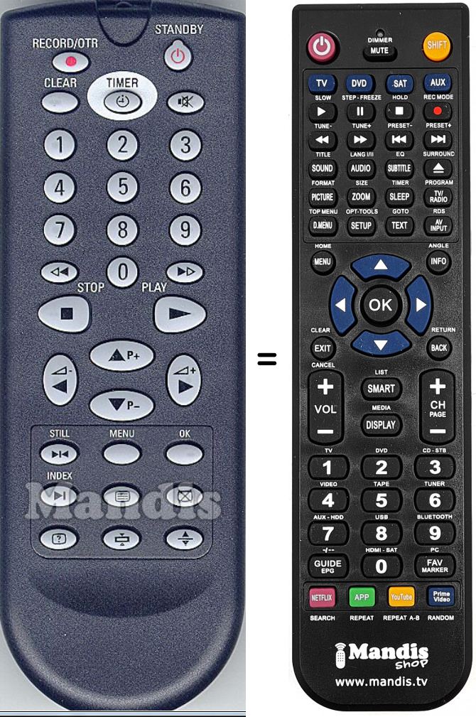 Télécommande qui remplace celle d'origine car elle possède les mêmes fonctions.