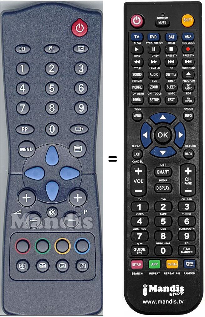Télécommande qui remplace celle d'origine car elle possède les mêmes fonctions.