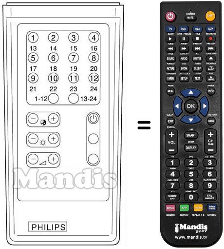 Télécommande qui remplace celle d'origine car elle possède les mêmes fonctions.