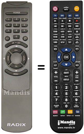 Télécommande qui remplace celle d'origine car elle possède les mêmes fonctions.
