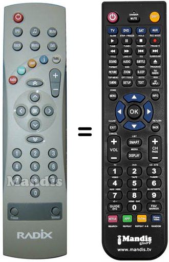 Télécommande qui remplace celle d'origine car elle possède les mêmes fonctions.