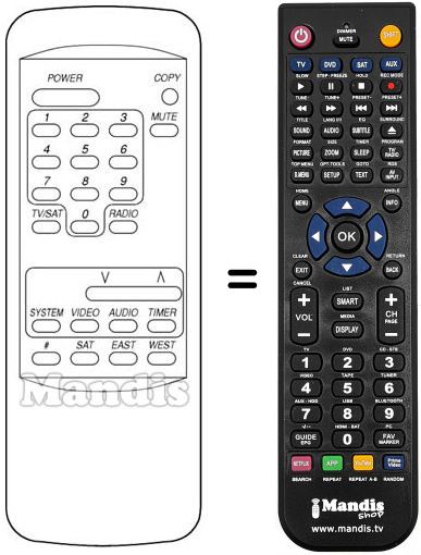 Télécommande qui remplace la télécommande d'origine 5100 S car elle possède les mêmes fonctions.