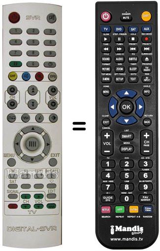 Télécommande qui remplace celle d'origine car elle possède les mêmes fonctions.