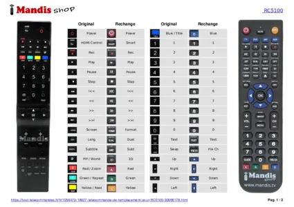 Cette télécommande remplace entièrement votre RC 5100 et offre toutes les fonctions de l'originale.