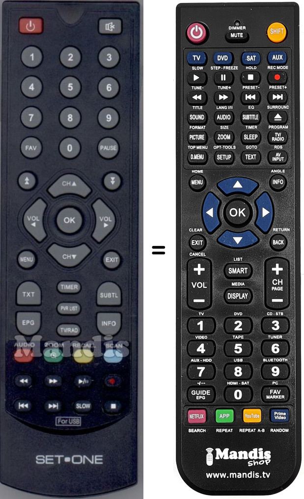 Il ne s'agit pas d'une télécommande universelle mais d'une télécommande qui remplace celle d'origine.