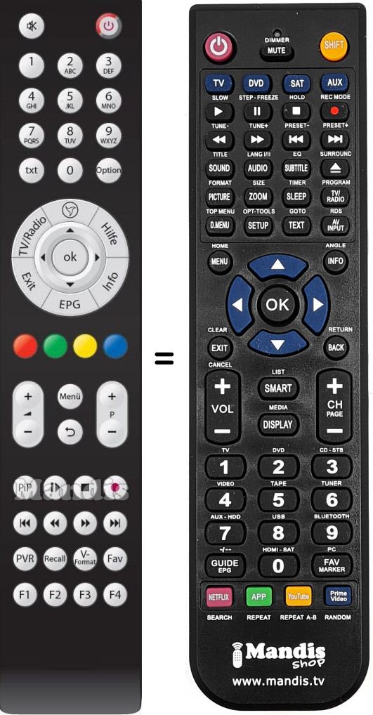 Télécommande qui remplace la télécommande d'origine 3 Mediabox car elle possède les mêmes fonctions.