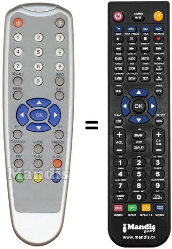 Télécommande qui remplace celle d'origine car elle possède les mêmes fonctions.