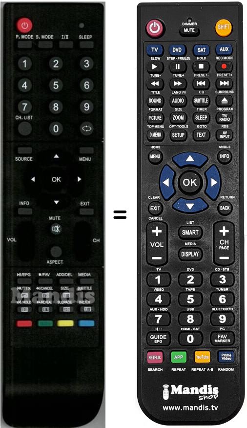 Télécommande qui remplace celle d'origine car elle possède les mêmes fonctions.