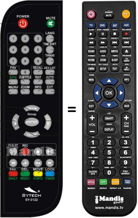 Télécommande qui remplace celle d'origine car elle possède les mêmes fonctions.