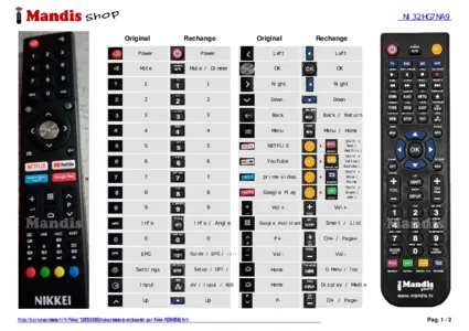 Un document est inclus pour vous aider à utiliser facilement la nouvelle télécommande, en indiquant la correspondance des boutons.