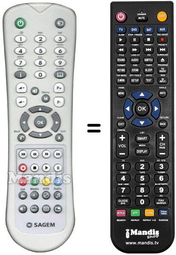 Télécommande qui remplace celle d'origine car elle possède les mêmes fonctions.