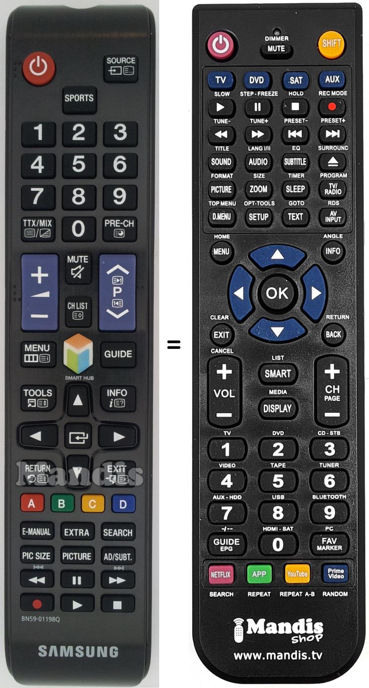 Télécommande qui remplace celle d'origine car elle possède les mêmes fonctions.