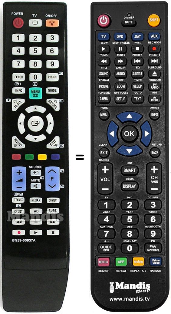 Télécommande qui remplace celle d'origine car elle possède les mêmes fonctions.
