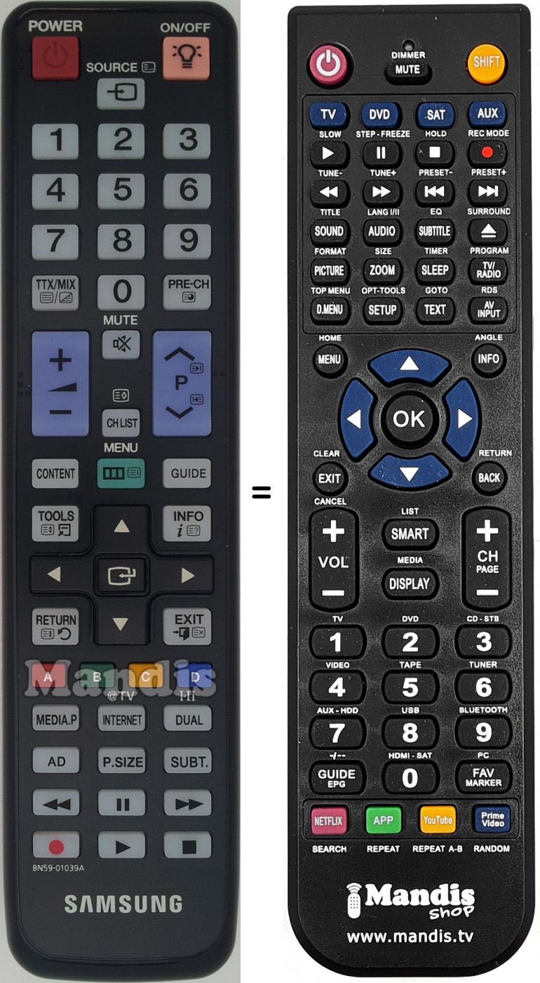 Télécommande qui remplace celle d'origine car elle possède les mêmes fonctions.