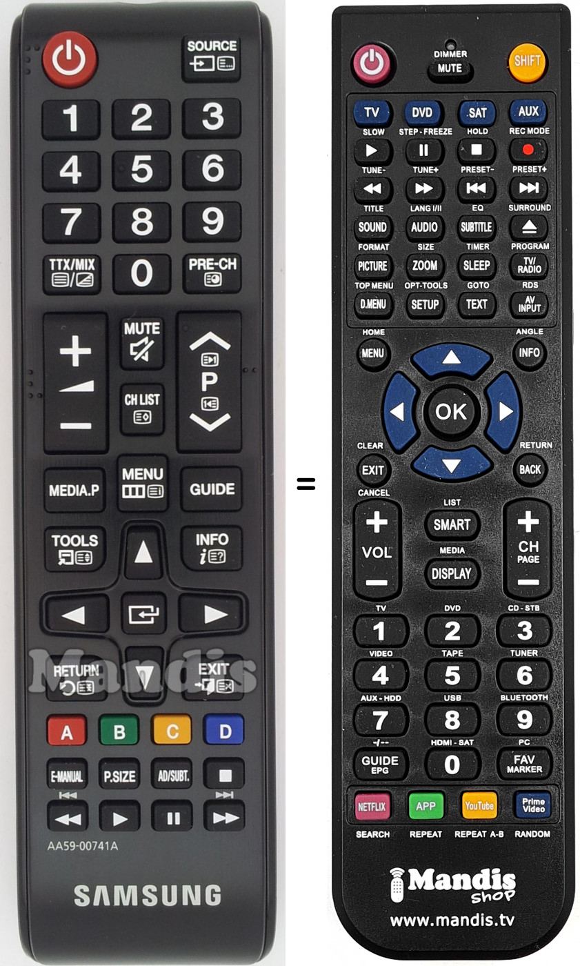 Télécommande qui remplace celle d'origine car elle possède les mêmes fonctions.