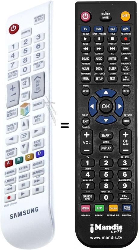 Télécommande qui remplace celle d'origine car elle possède les mêmes fonctions.