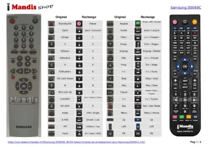 Télécommande de remplacement pour 00049 C