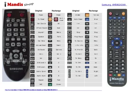 Un document est inclus pour vous aider à utiliser facilement la nouvelle télécommande, en indiquant la correspondance des boutons.