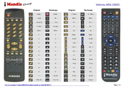 Un document est inclus pour vous aider à utiliser facilement la nouvelle télécommande, en indiquant la correspondance des boutons.