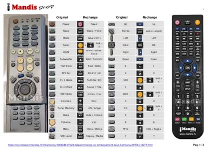 Un document est inclus pour vous aider à utiliser facilement la nouvelle télécommande, en indiquant la correspondance des boutons.