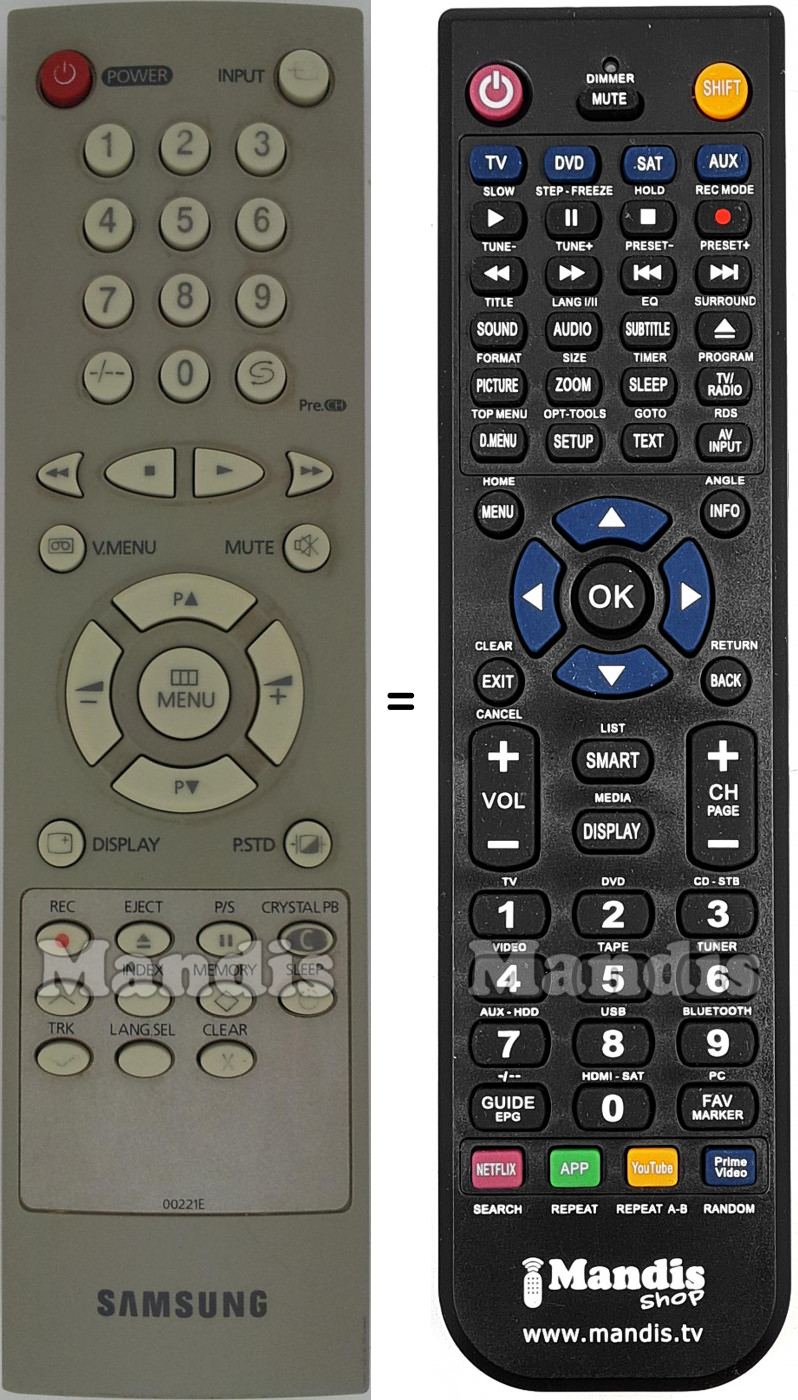 Cette télécommande remplace entièrement votre 00221E et offre toutes les fonctions de l'originale.