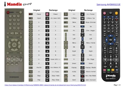 Un document est inclus pour vous aider à utiliser facilement la nouvelle télécommande, en indiquant la correspondance des boutons.