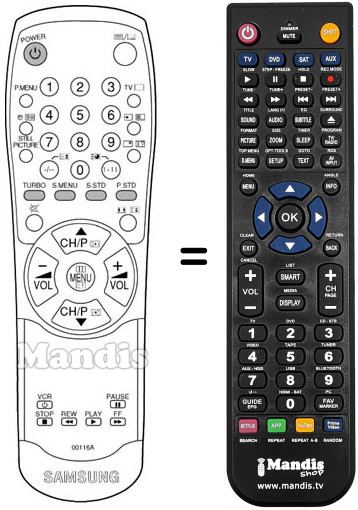 Télécommande qui remplace la télécommande d'origine 00116 A car elle possède les mêmes fonctions.