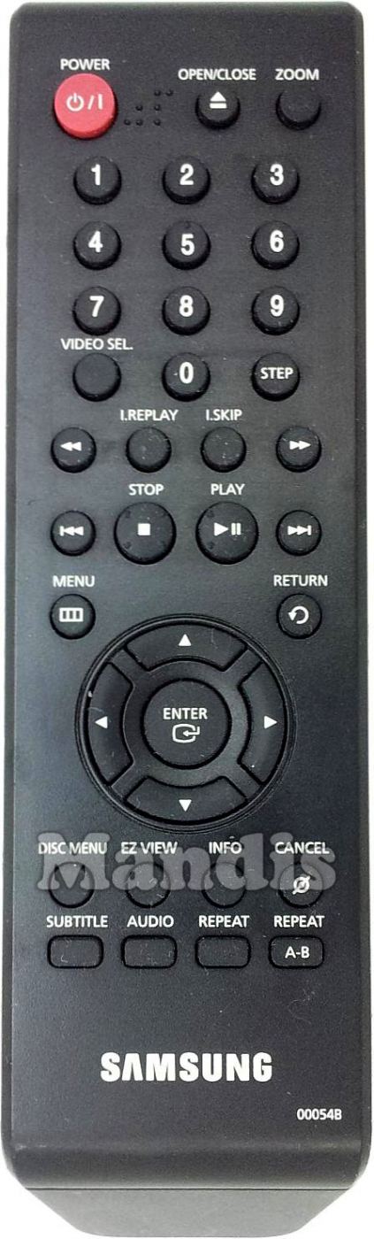 Power, Open / Close, Zoom, 1, 2, 3, 4, 5, 6, 7, 8, 9, 0, Video Sel., Step, <<, I.Replay, I.Skip, >>, I<<, Stop, Play / Pause, >>I, Menu, Return, Up, Down, Right, Left, Enter, Disc Menu, EZ View, Info, Cancel, Subtitle, Audio, Repeat, Repeat A-B