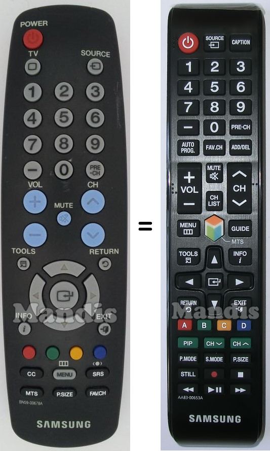 Télécommandes équivalentes qui remplacent la télécommande SAMSUNG TM1260 (AA83-00653A) et possèdent exactement les mêmes fonctions :