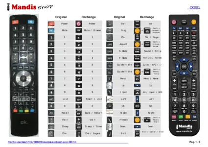 Un document est inclus pour vous aider à utiliser facilement la nouvelle télécommande, en indiquant la correspondance des boutons.
