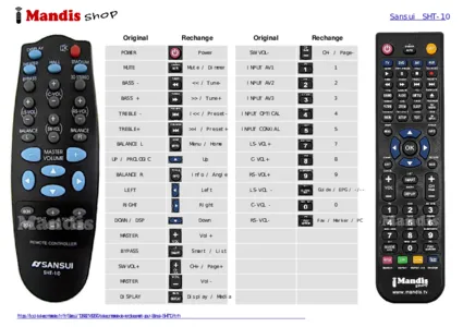 Accueil > Marques > Télécommandes Sansui > Télécommande pour SANSUI SH-T10