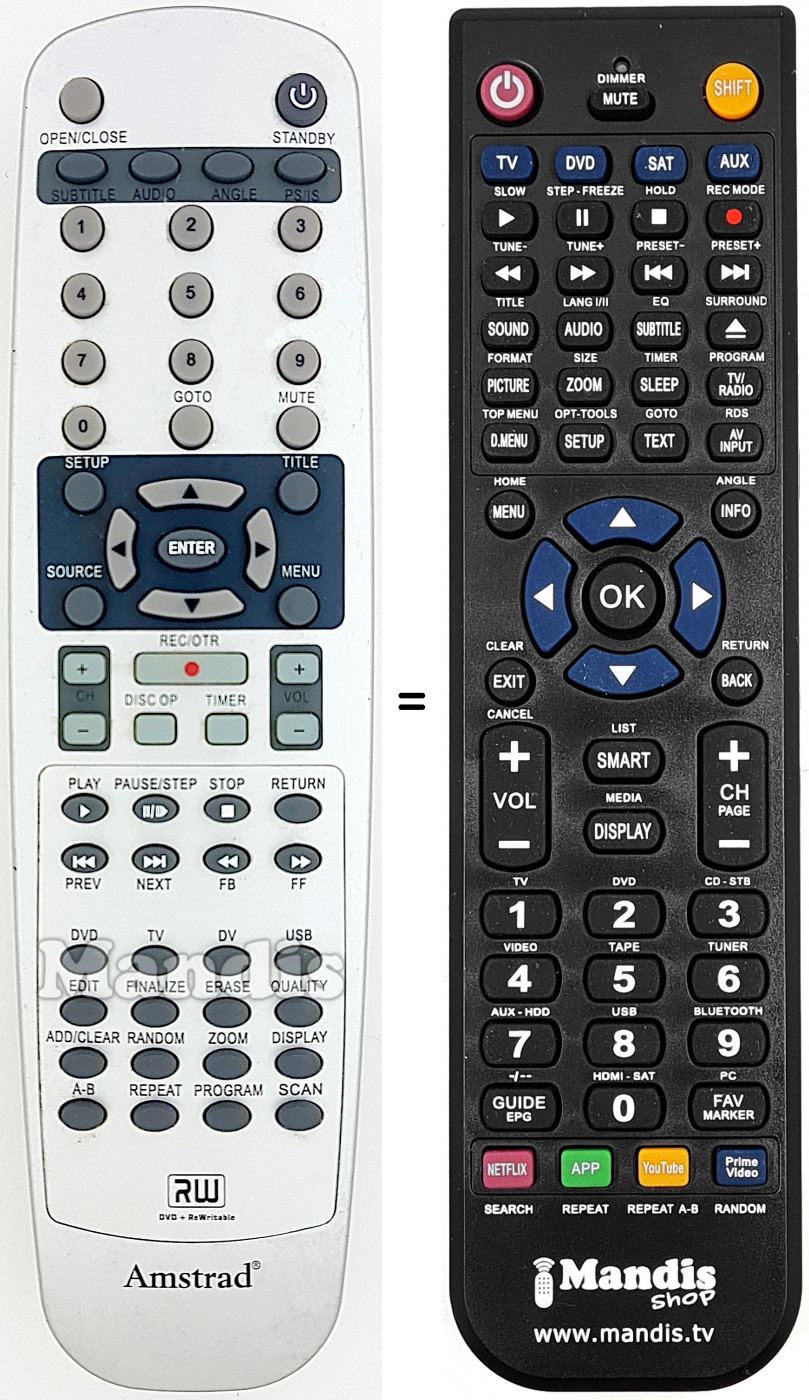 Télécommande qui remplace celle d'origine car elle possède les mêmes fonctions.