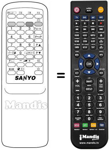 Télécommande qui remplace celle d'origine car elle possède les mêmes fonctions.