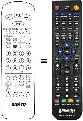 Télécommande qui remplace celle d'origine car elle possède les mêmes fonctions.