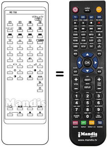 Télécommande qui remplace celle d'origine car elle possède les mêmes fonctions.