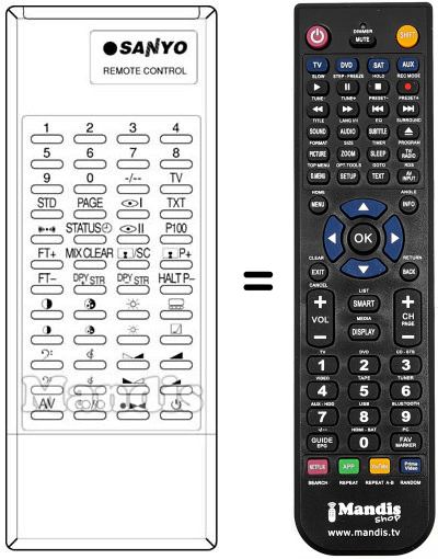 Télécommande qui remplace celle d'origine car elle possède les mêmes fonctions.