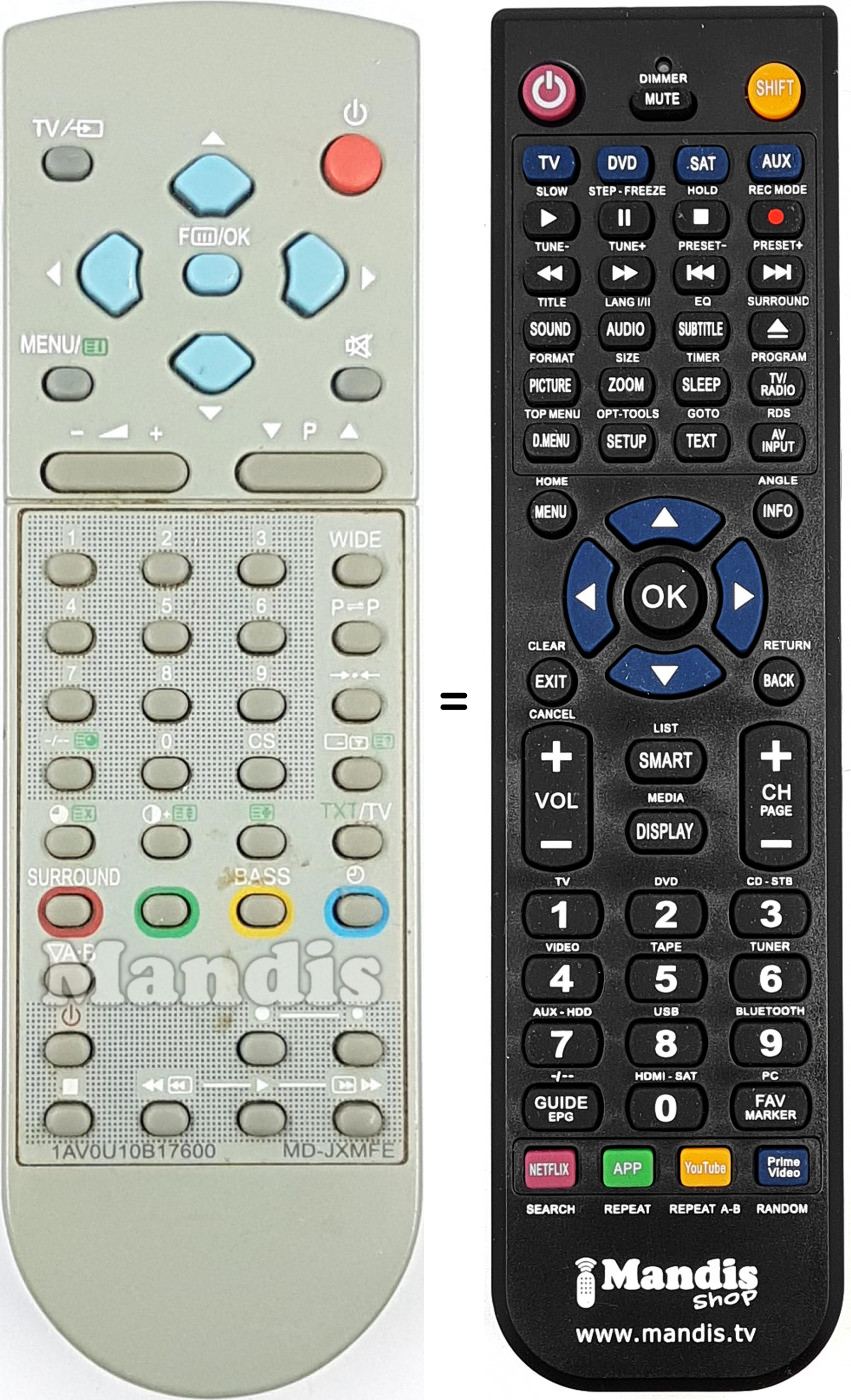 Télécommande qui remplace celle d'origine car elle possède les mêmes fonctions.