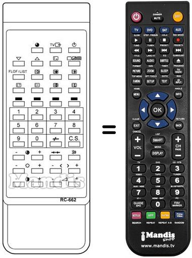 Télécommande qui remplace celle d'origine car elle possède les mêmes fonctions.