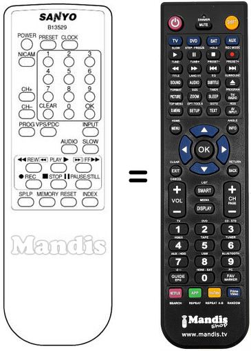Télécommande qui remplace celle d'origine car elle possède les mêmes fonctions.