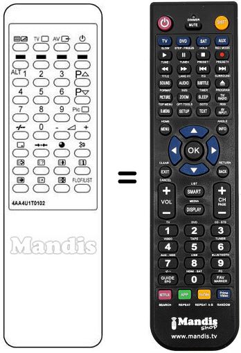 Télécommande qui remplace celle d'origine car elle possède les mêmes fonctions.