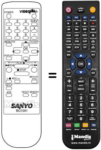 Télécommande qui remplace celle d'origine car elle possède les mêmes fonctions.