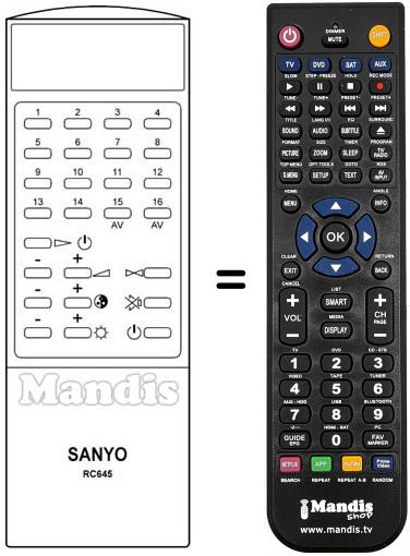 Télécommande qui remplace celle d'origine car elle possède les mêmes fonctions.