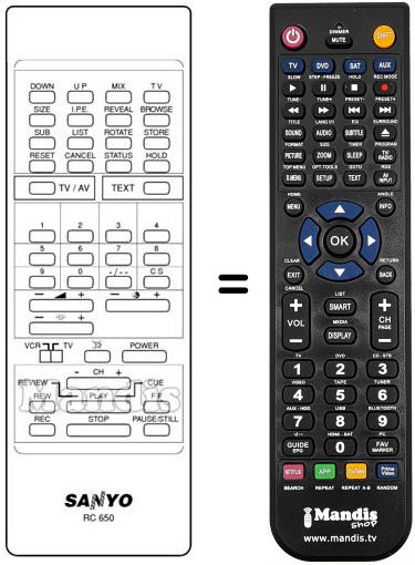 Télécommande qui remplace celle d'origine car elle possède les mêmes fonctions.