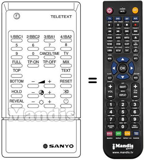 Télécommande qui remplace celle d'origine car elle possède les mêmes fonctions.