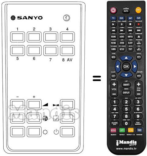 Télécommande qui remplace celle d'origine car elle possède les mêmes fonctions.